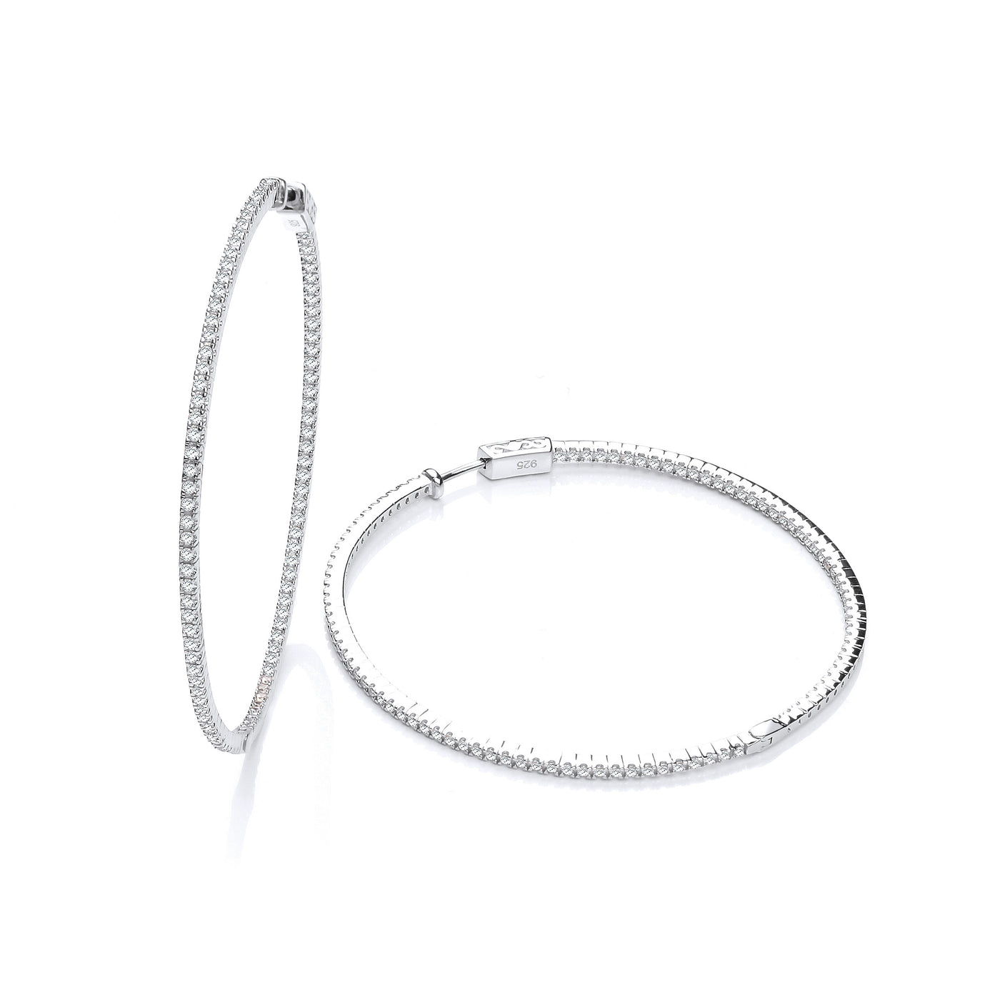925 Sterling Silver Micro Pave' 60mm Round Hoop CZ Earrings J-Jaz