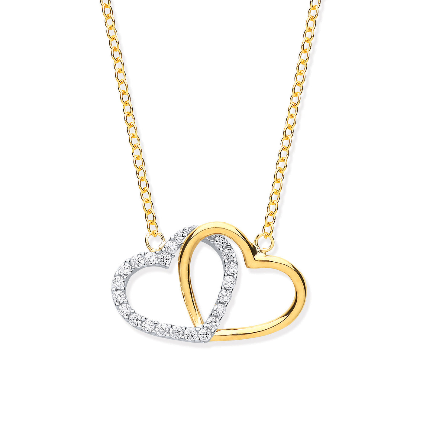 Y & W/G Plain and CZ Joined Hearts Pendant on 18" Chain